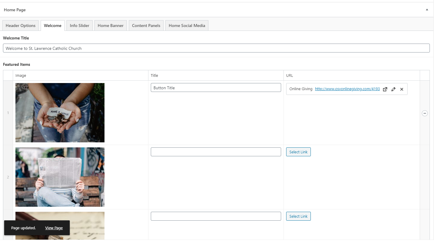 ✔ Homepage - Backend - Featured Items, why have Title and the URl, why not just Link Text in URL