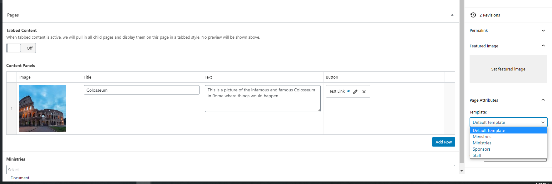 ✔ Little Flower Template - Templates - Why are there two "Ministries" ones and what do they do exactly since the Ministry selector is already on the default template