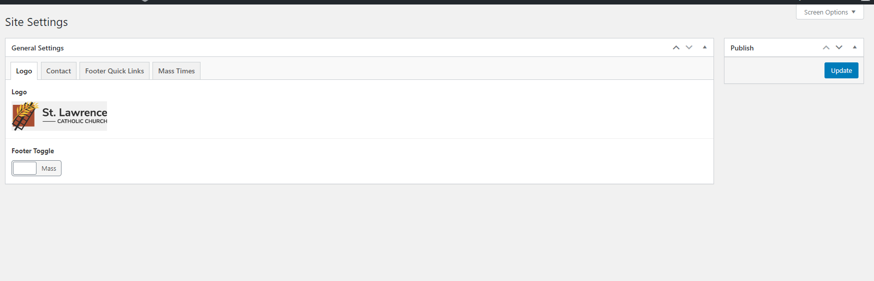 ✔ Theme Settings - Footer Toggle does not work, the logo does not show only ever the Mass Times