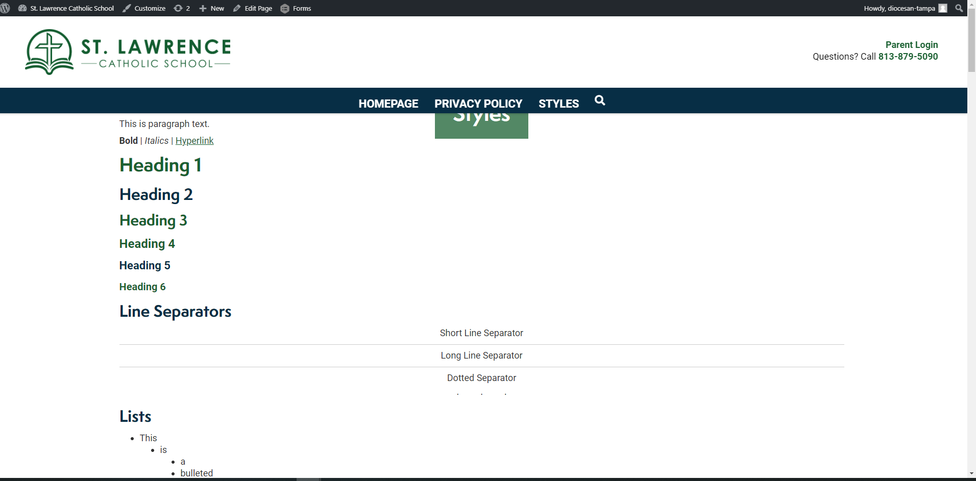 From the list: Build ✔ Pages - Default Featured Image should display when no featured image Cody A. added this on Nov 30, 2020 Completed Dec 01, 2020 by Kyle B. Assigned to Kyle B. Notes https://stlawrencecatholicschool.diocesanweb.org/styles/ image.png 121 KB • Download Comments & Events Kyle Brown completed this to-do. Dec 01, 2020 at 9:04 PM