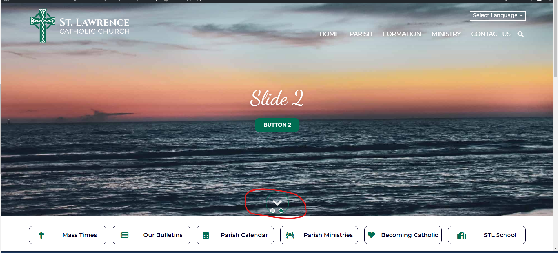 Because both of the dots are within that circle, they can be hard to slick and because there are no arrows, that is the only way to navigate it, so maybe make the image taller or move the down arrow button up.