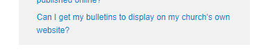 Click on the link above. On the left side, the last question will be "Can I get my bulletins to display on my church's own website?" Click on the question and it will drag you down on the page to the step-by-step instructions on how to set up the code to display your bulletins.