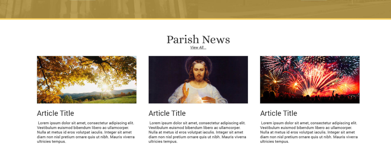 ✔ Need a "View All" link under Parish News on homepage. Also, center Parish News and make it the larger curly font.
