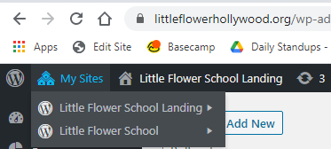 https://littleflowerhollywood.org/school/hollywood (School) and these two sites can be toggled between by hovering over "My sites" in the upper left corner of the dashboard.