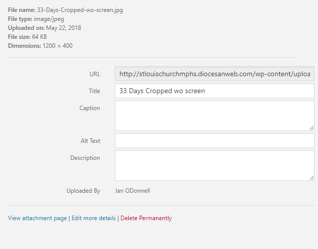 For any future emails, please send them to webdepartment@diocesan.com so that we can quickly and properly assist you. Plus, if Daniel or I are out of town, someone will help you out.