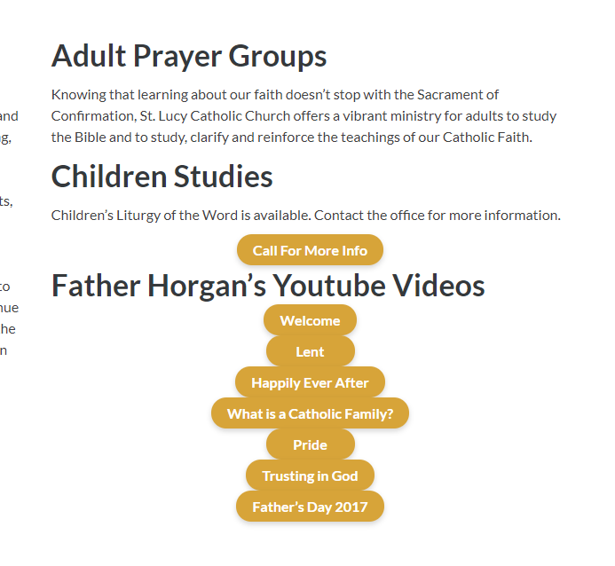 From the list: Build ✔ Buttons - Need some top or bottom margins Cody A. added this on Mar 20, 2020 Completed Mar 25, 2020 by Cody A. Assigned to Cody A. Notes https://lucy.diocesanweb.org/faith-formation/religious-education/ image.png 60.4 KB • Download Comments & Events Cody Armock completed this to-do. Mar 25, 2020 at 3:52 PM