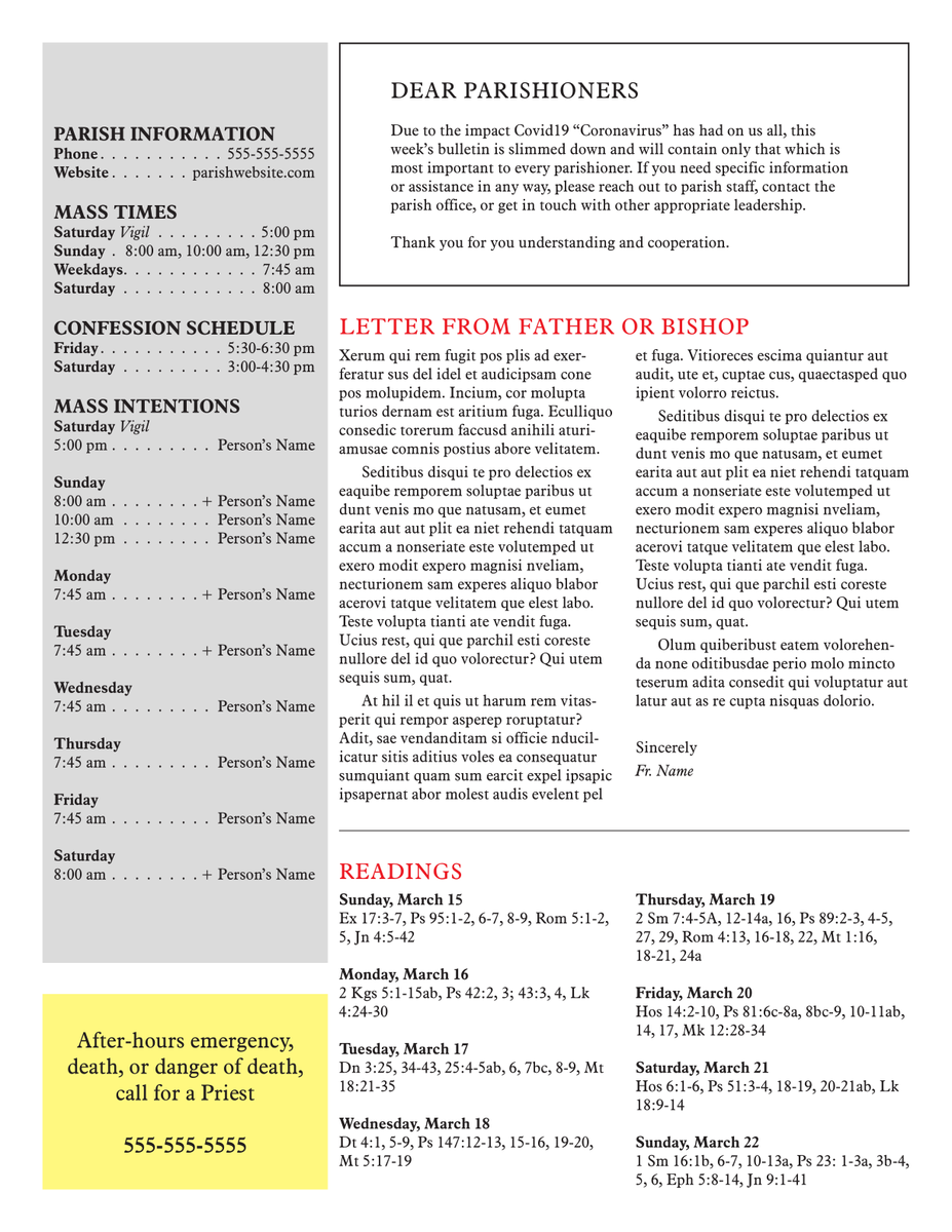 Here are the files for parishes to use to direct people to a Bishop's or Priest's letter/communication about Covid 19: