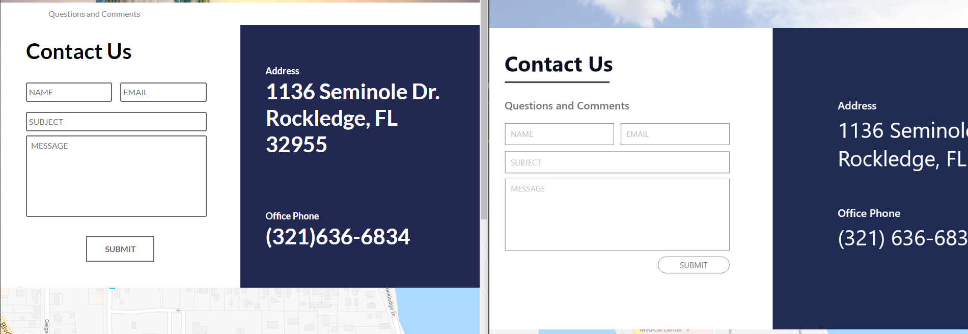 Submit button on Contact Us page needs to be right-aligned and pill shaped, not rectangular and center-aligned and needs less weighty border. Photo left is actual and right is proof.