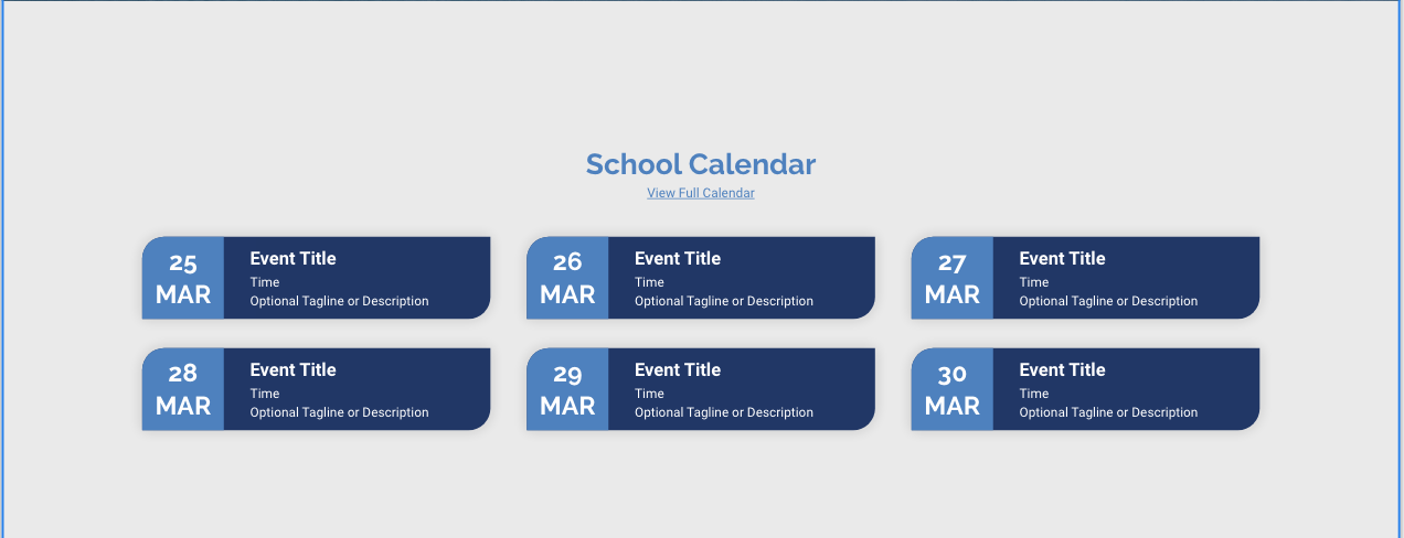 Did we discuss the pros and cons of Google Calendar on the homepage for the school design? If so, did we decide to go with Google Calendar or another platform for this section?