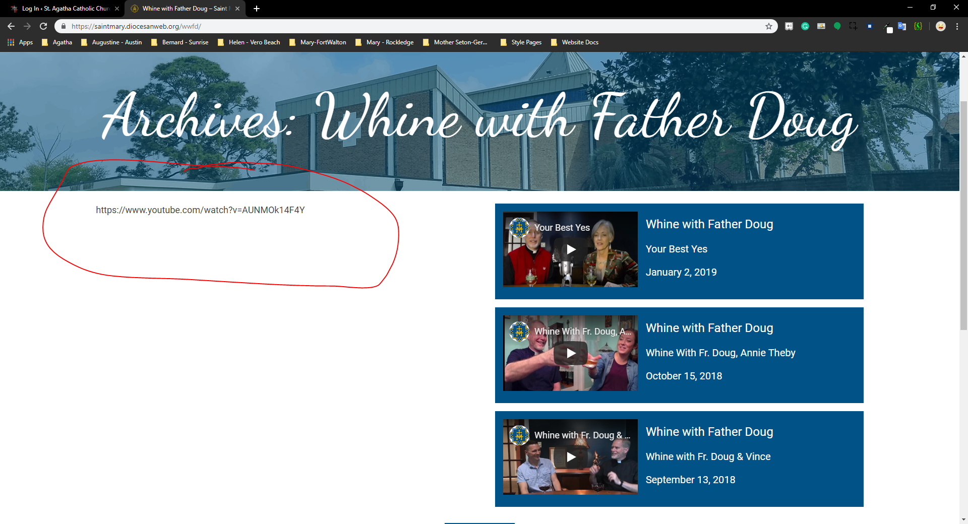✔ Have them disable 3rd-party viewing on most recent Whine with Fr. Doug Video link in notes