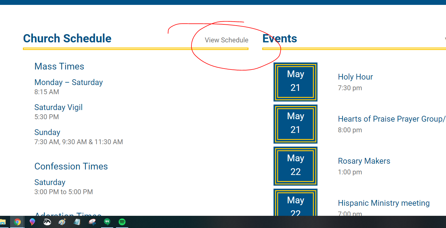 ✔ Homepage - Link for the View Full Schedule for Mass Times