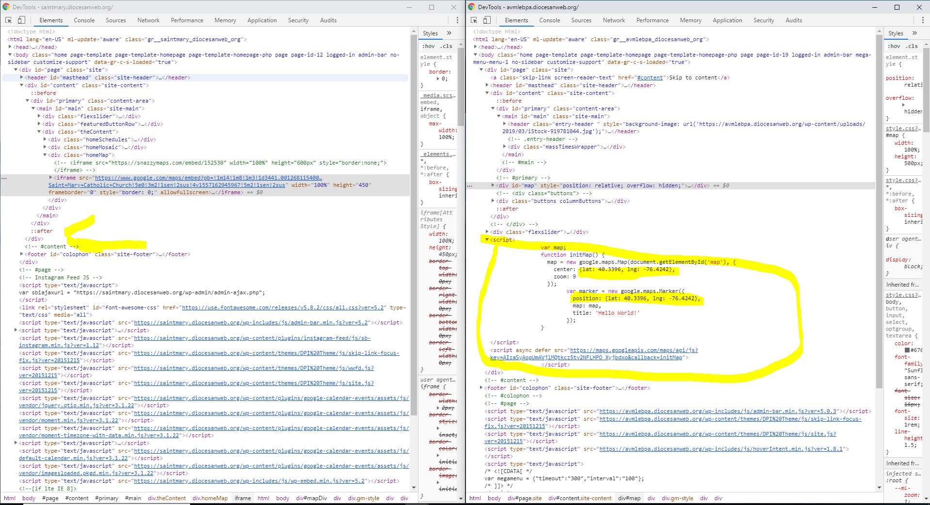 That may be why the other code, using the div id of map wasn't working. Not sure if you checked the console or not, or even if it would've threw an error in the console, but that code should work above. If they want it changed then I can do that.