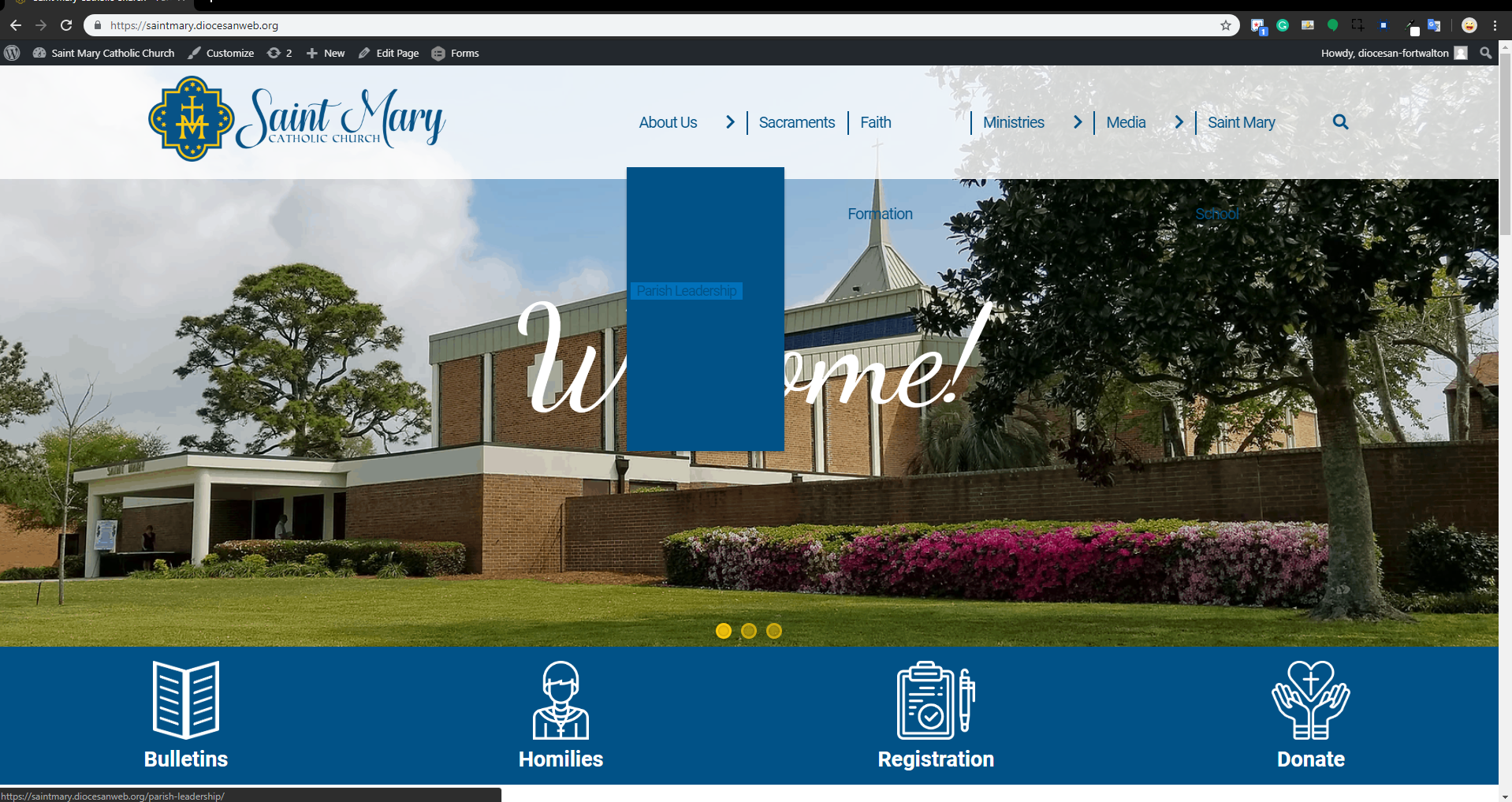 - White text on the blue background