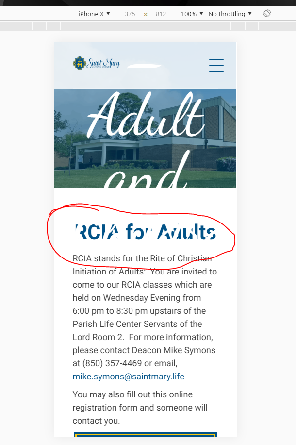 https://saintmary.diocesanweb.org/wwfd/ as an example that needs the title to shrink. Masthead should already be opaque from other to-dos and image should be separate thing, aka, no overlay. Definitely should not bleed onto the content like the two below.