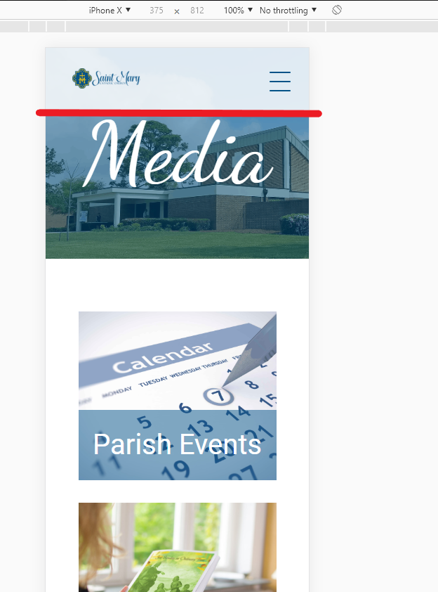 ✔ Mobile - Masthead on inner pages should be own thing and not overlay the photos.