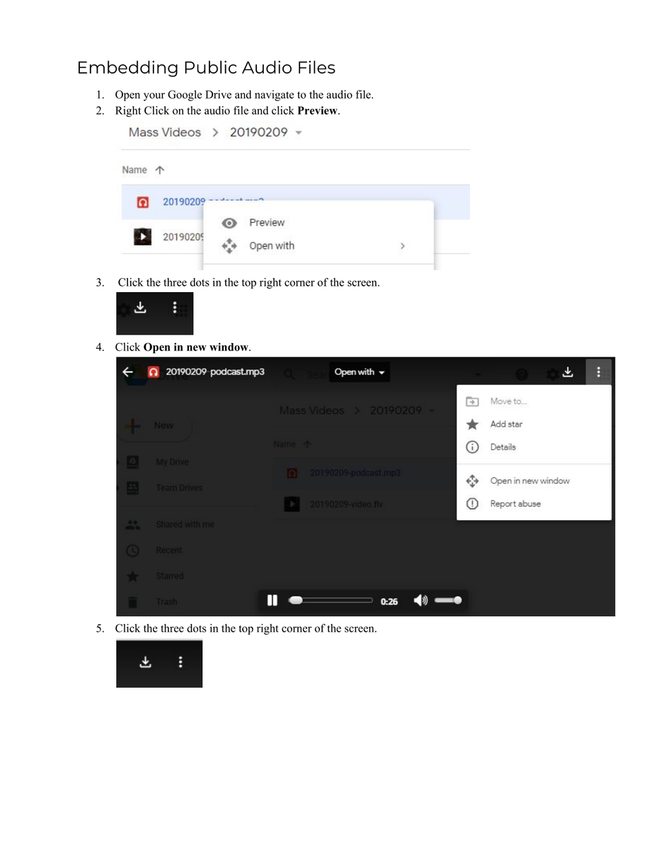 As for the homilies, I have done them two different ways. Some homilies are with Google embeds (January 26) and others are with the actual uploaded audio file (February 9).