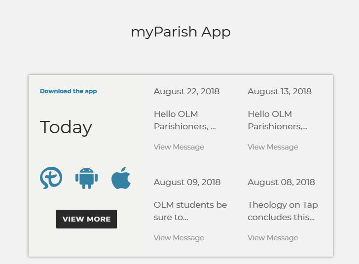 ✔ The current app area is going to be replaced with a "myParish App" area. They want the Messages to be displayed. So have messages as well as the download buttons.
