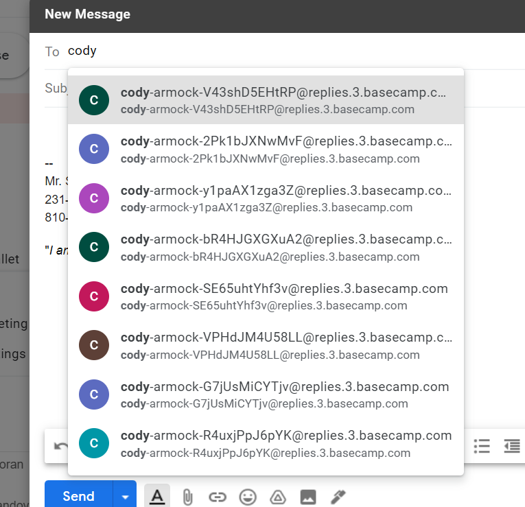 Speak of, I have something you may be able to help me with. When filling in your name in my google email I get a bunch of duplicates.
