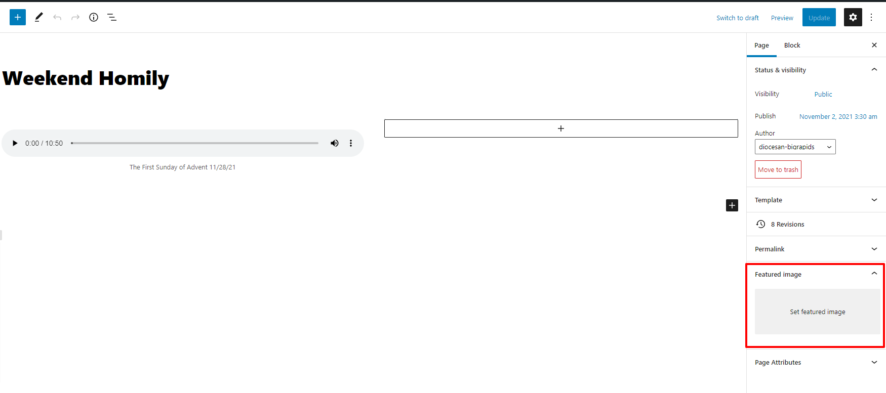 Also, you can change that image on each page using the featured image selector in the backend editor as shown highlighted in the screenshot below.