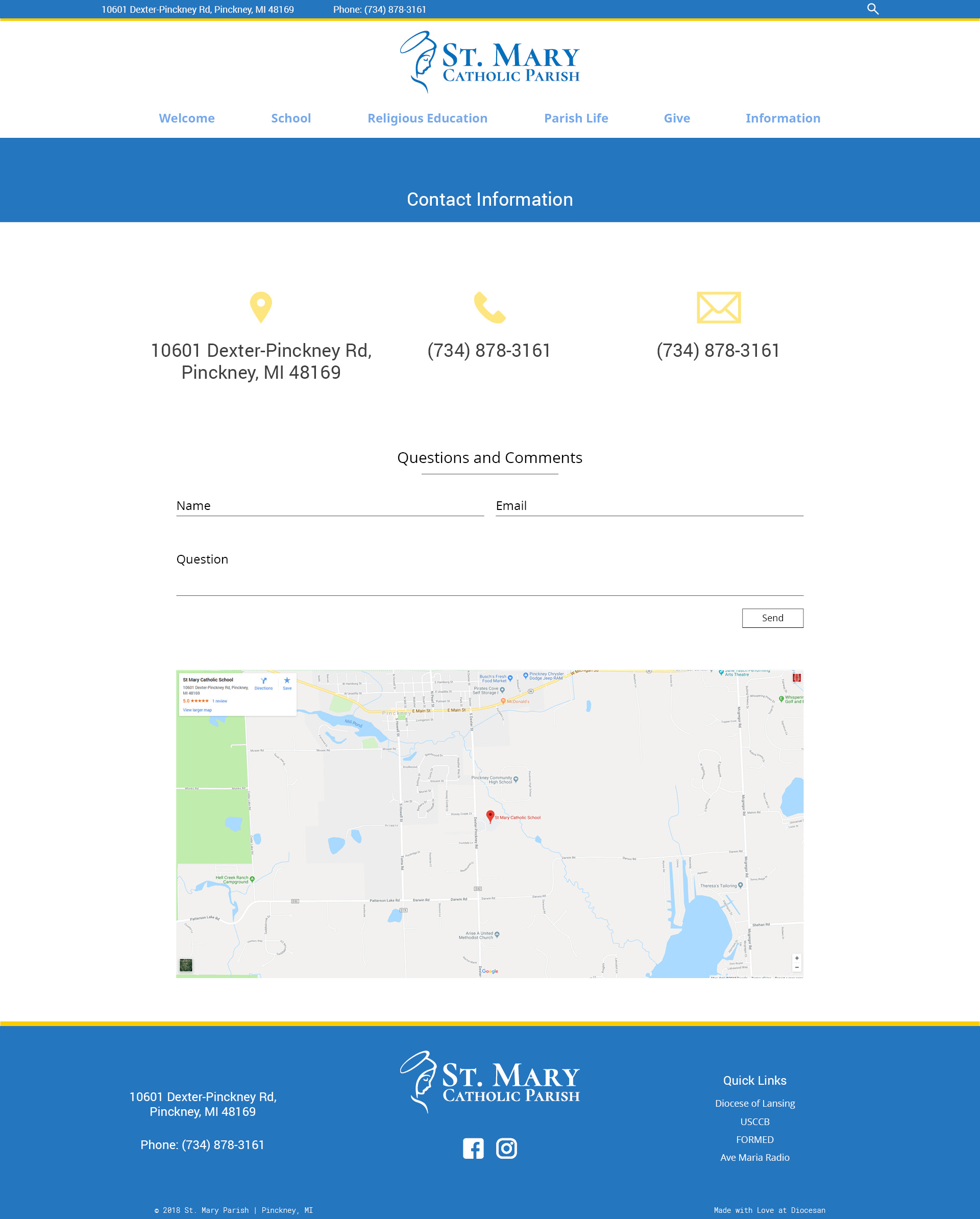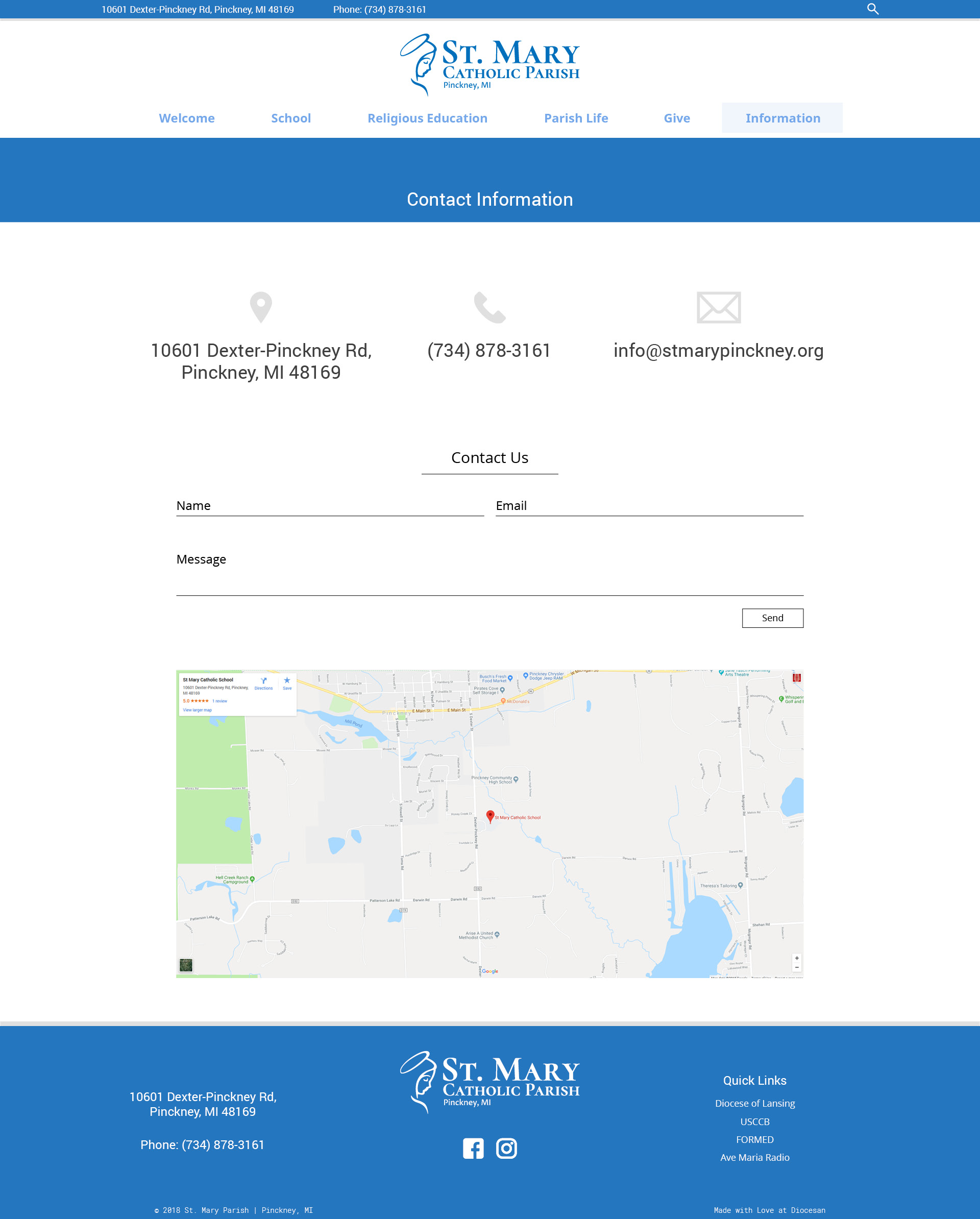 Under the mail icon is the phone number. Please change to: info@stmarypinckney.org (mailto:info@stmarypinckney.org)
