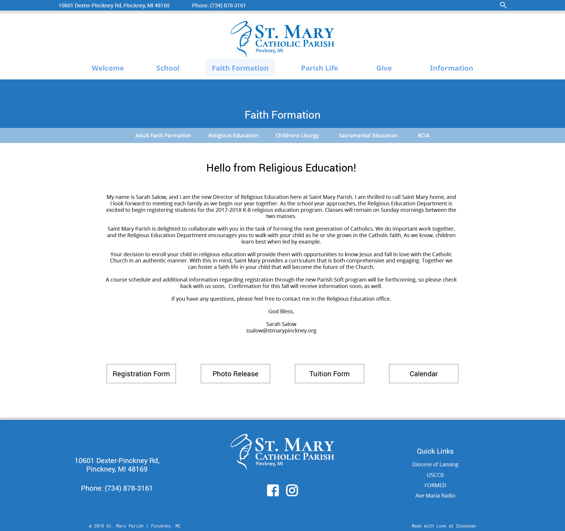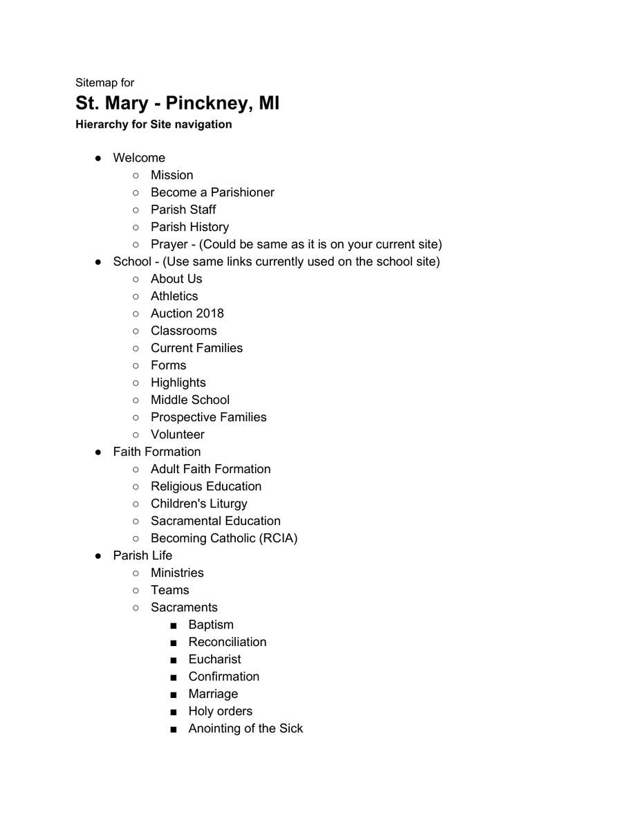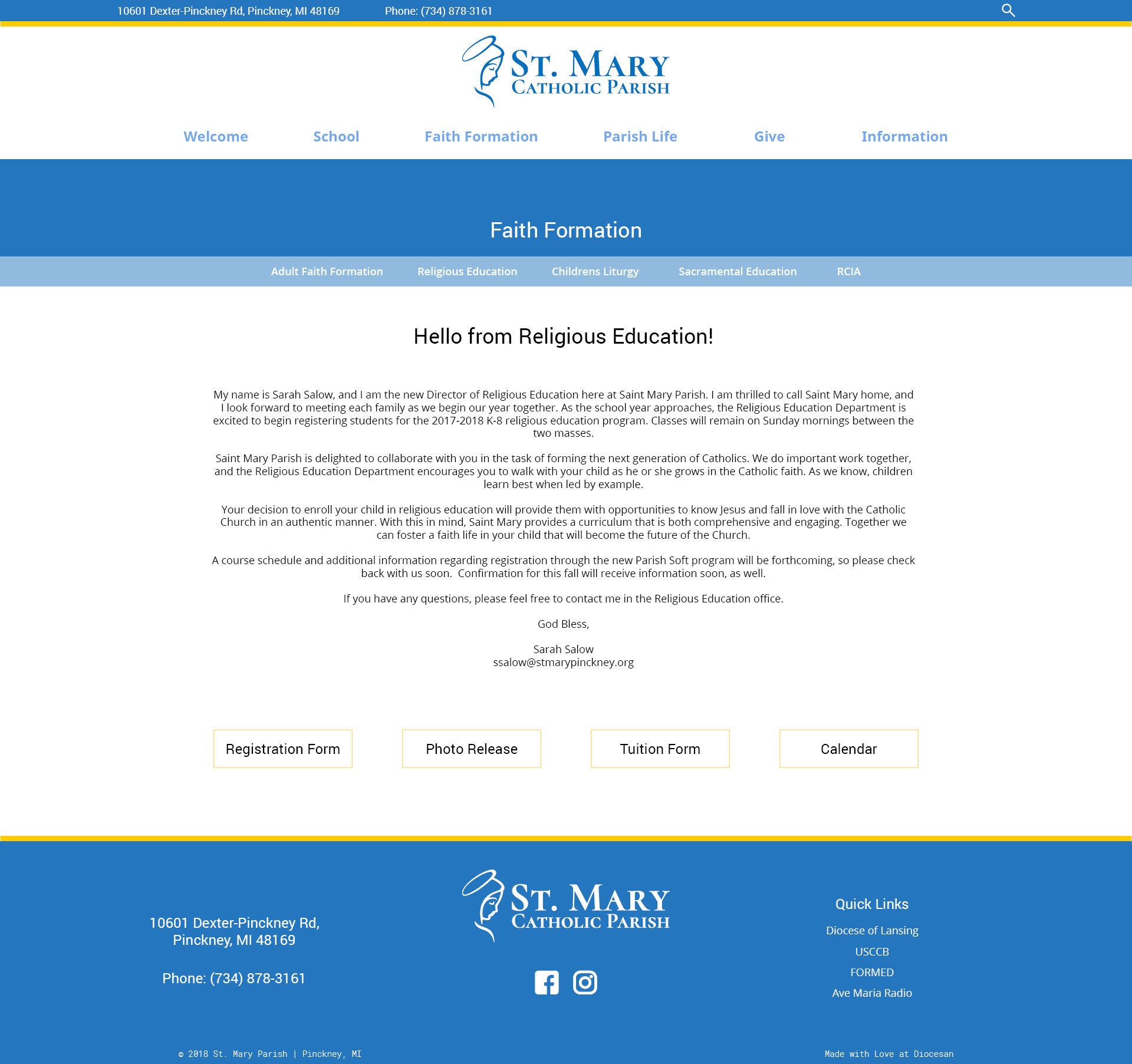 Please include Sarah in all communications, ssalow@stmarypinckney.org (mailto:ssalow@stmarypinckney.org)