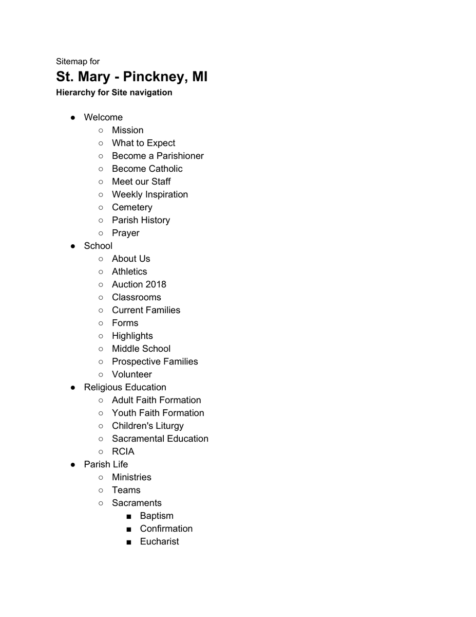 Could you take the time to check out the site map I put together using your current navigation and the new top line nav items. Let me know if everything looks ok or if it needs to be changes feel free to make changes to it and send it back.