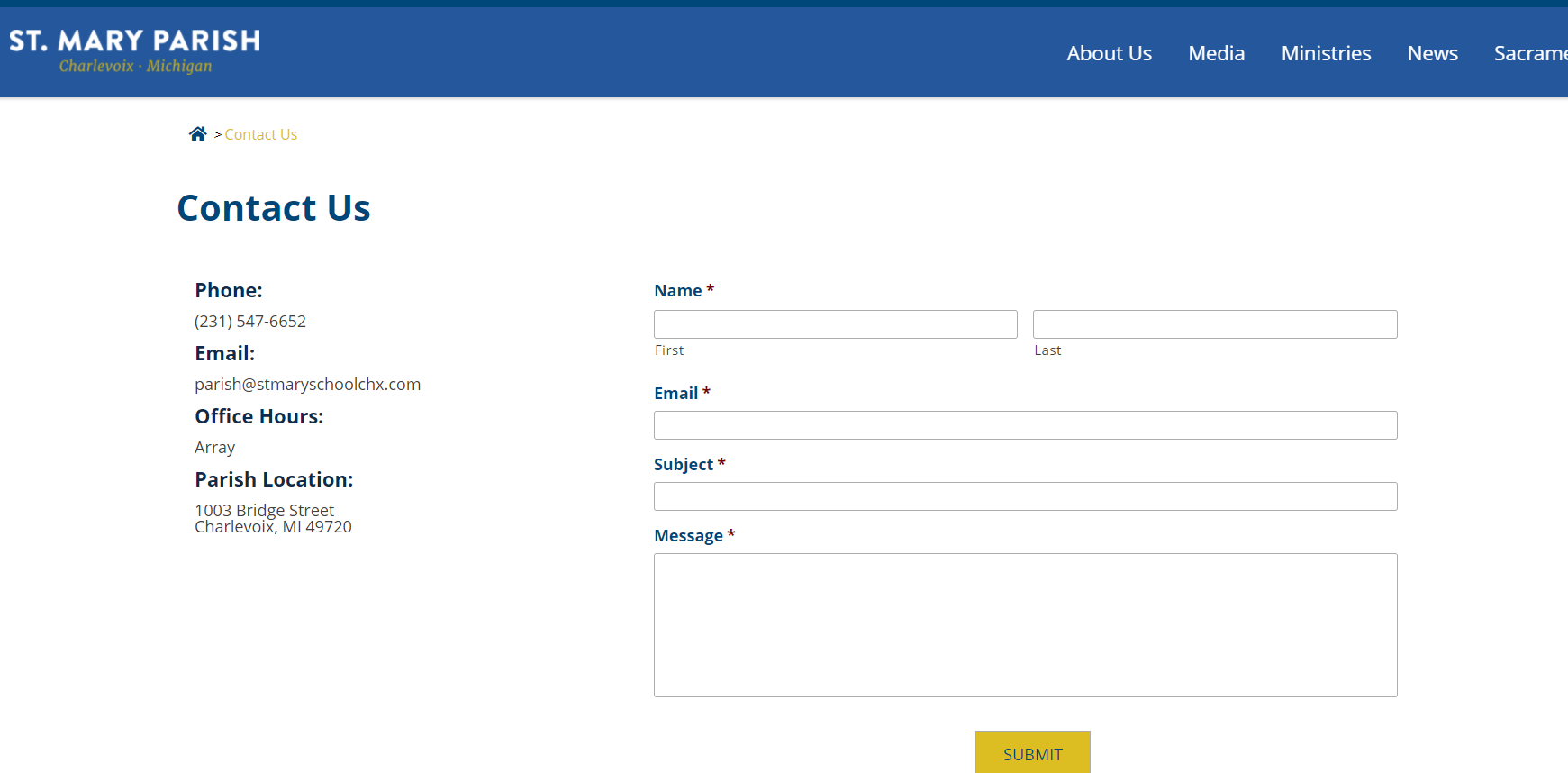 From the list: Build ✔ Church - Office hours - Contact Us Page Cody A. added this on Oct 21, 2020 Completed Oct 23, 2020 by Kyle B. Assigned to Kyle B. Notes https://marycharlevoix.diocesanweb.org/contact-us/says Array instead of the actual hours. image.png 83.6 KB • Download Comments & Events Kyle Brown completed this to-do. Oct 23, 2020 at 5:34 PM