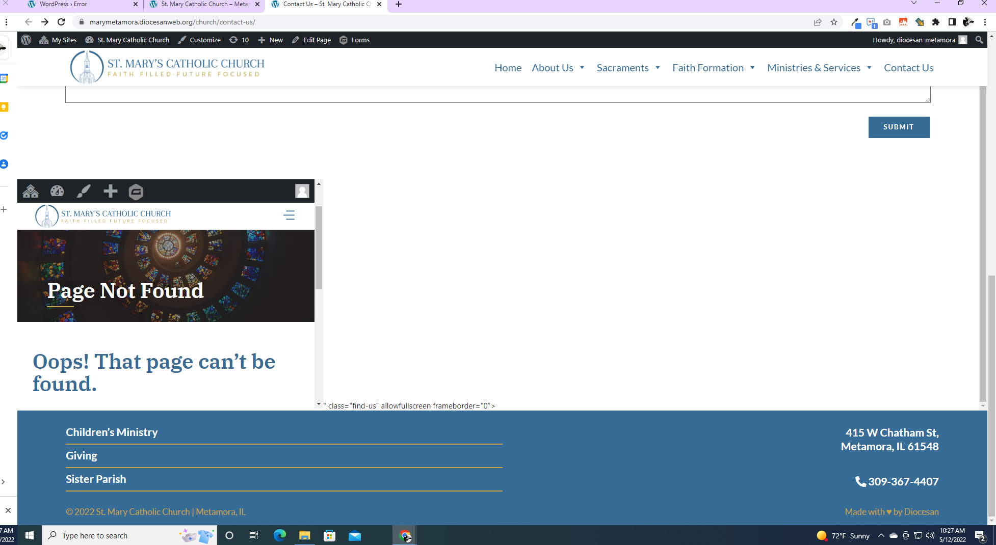 Please fix this issue. See screenshot. Caused when adding the iframe map embed. This needs to be fixed ASAP we are rushing this site to get the client trained ASAP.