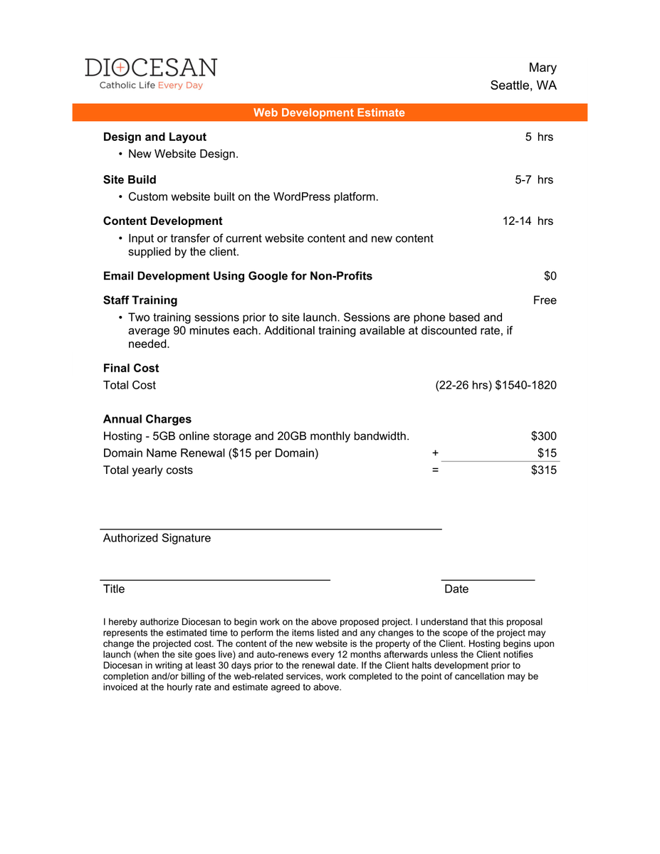 Last summer we spoke about a new website for St Mary's. I sent over a proposal for you to review, and after a few conversations, you mentioned the project was going to be on hold.