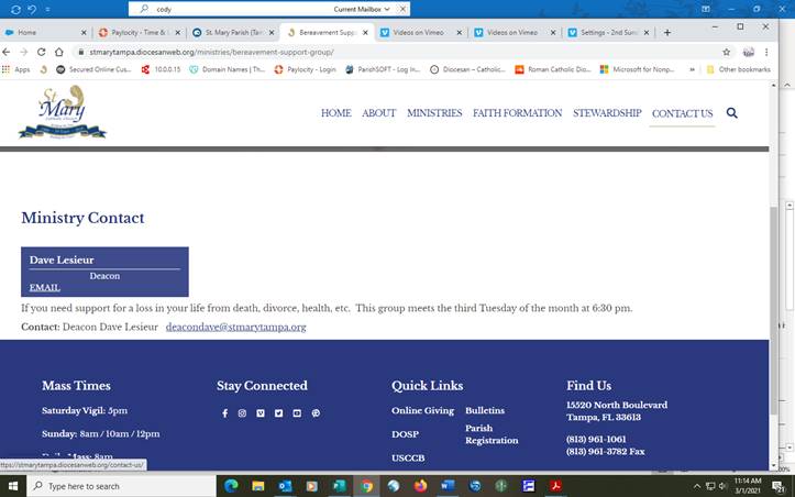 Too much white space above ministry contact. Contact is in there twice. No space anywhere.