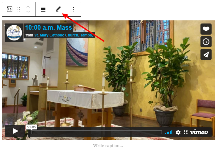 We livestream the 10:00 a.m. Mass through Vimeo. Right now on our current website, I have
