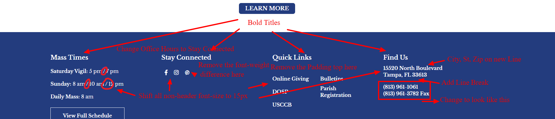 Quite a few footer changes. I added several CSS stylings to the Customize Additional CSS box, and changed the code in theme editor, but I marked out those changed in this picture.