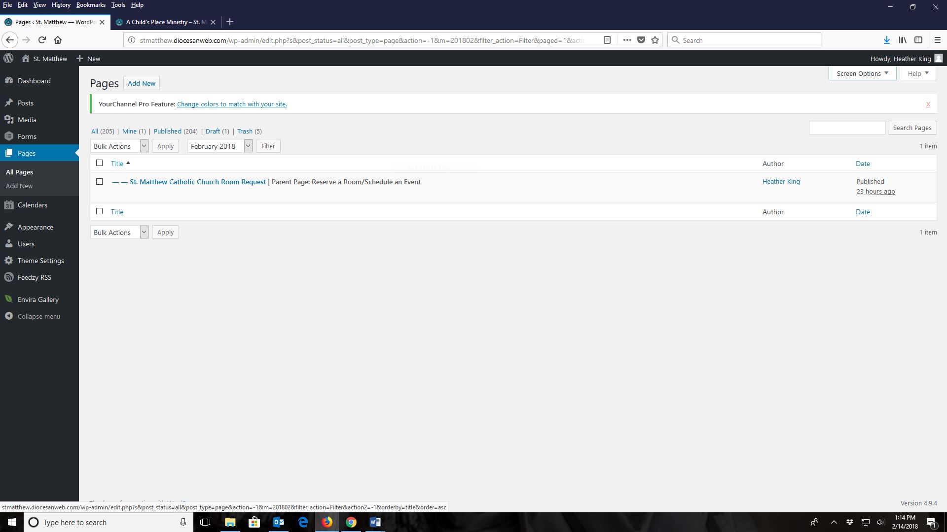 · I created a new page today but can’t figure out where it published. Can you help me figure it out? I tried to put it here: Reserve a Room/Schedule An Event<http://stmatthew.diocesanweb.com/reserve-a-roomschedule-an-event/>.