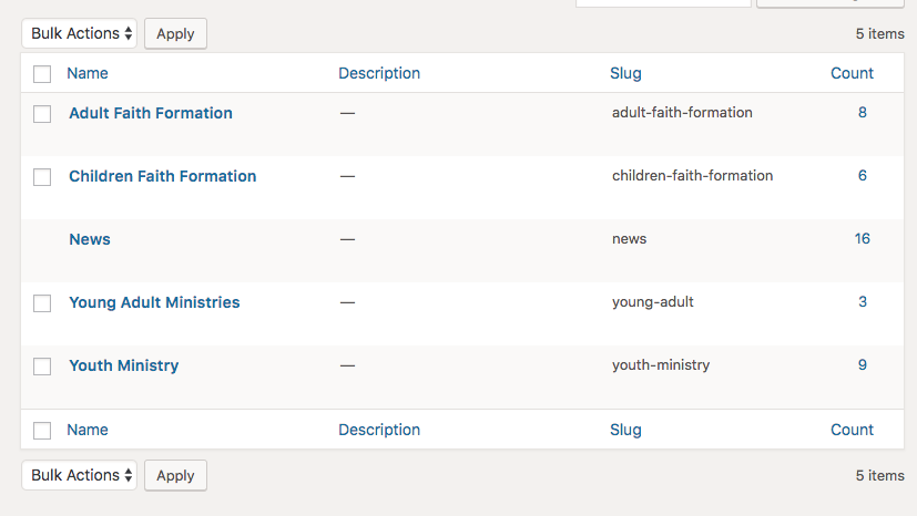 Once those two categories are created, I can forward the info to the myParish App Dept. and have them create the new buttons.