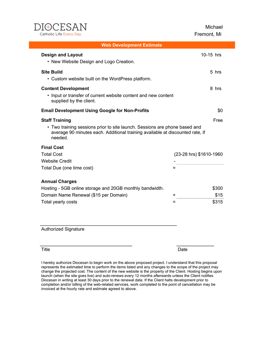 Whether you would want Diocesan to maintain the domain name, or the parish, the new design will still utilize the www.stmckt.org.