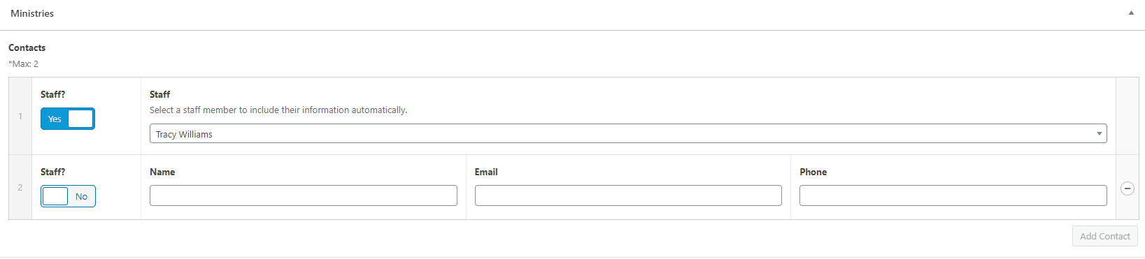 ✔ Ministries - Contact should have option for being non-staff like Robert hybrid