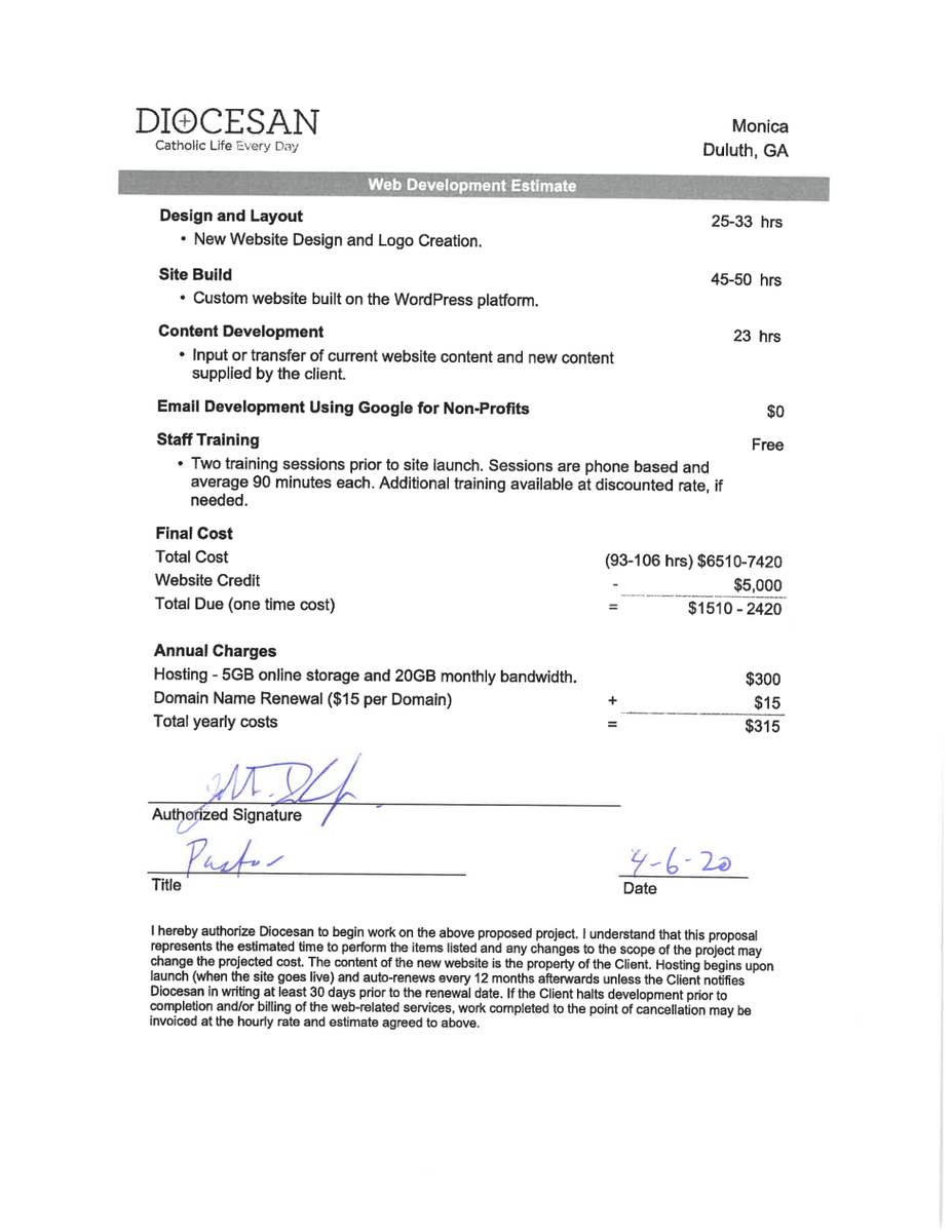 Please see attached signed contract for Saint Monicas.