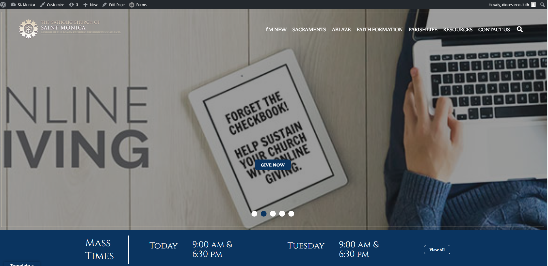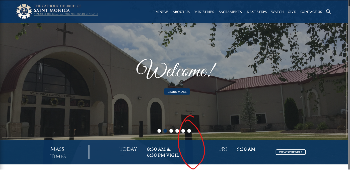 ✔ Homepage - Mass Times Banner transparent, showing the header option behind it