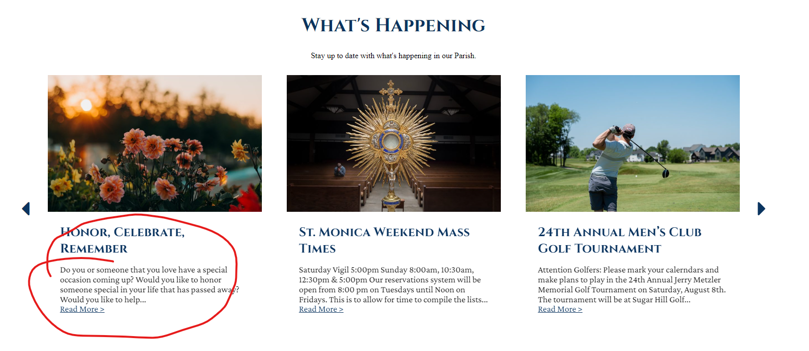 ✔ Homepage - Parish News should show the Custom Excerpt for the post