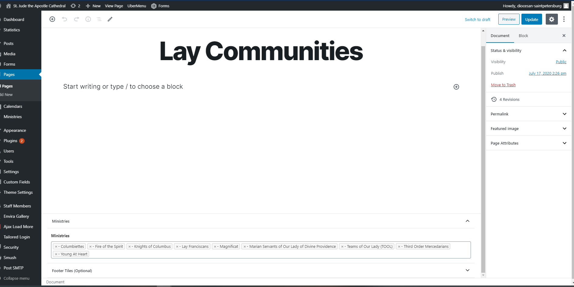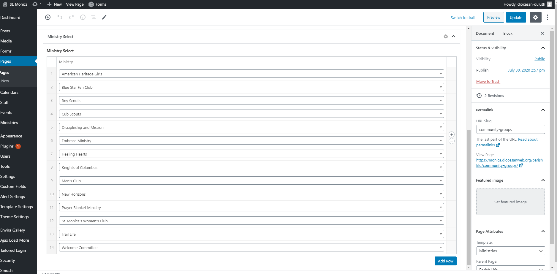 Ministry Page (Template)- Export via ACF and probably just able to copy over from the theme too.
