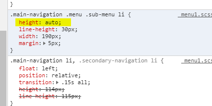 See the red lines and above it. Under Faith Formation only, but It happens if the last sub-menu item goes to two lines. Height was 30px, changing to auto seemed to fix this issue as well: Menu - More space when double lining, see photo - Mother Seton Parish - Germantown, MD for Mother Seton Staff