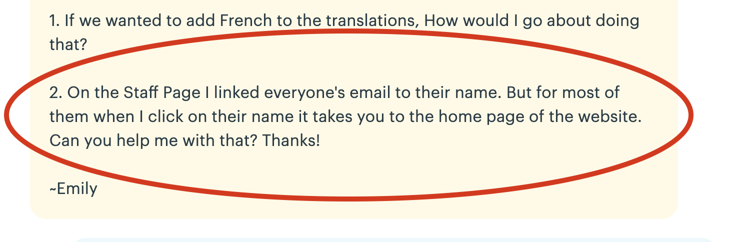 From the list: Build ❏ Staff emails update Veronica A. added this on Jun 14, 2019 Assigned to Kyle B. Due on Jun 14, 2019 Notes Screen Shot 2019-06-14 at 12.05.48 PM.png 105 KB • Download