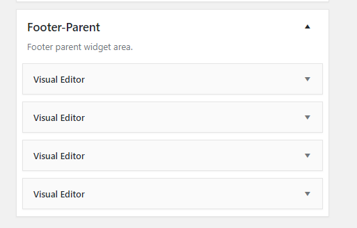 The section is editable under Appearance > Widgets > Footer-Parent. Remember, you will have to click the little arrows on the right side to open up each one. Each Visual Editor is a column in the footer.
