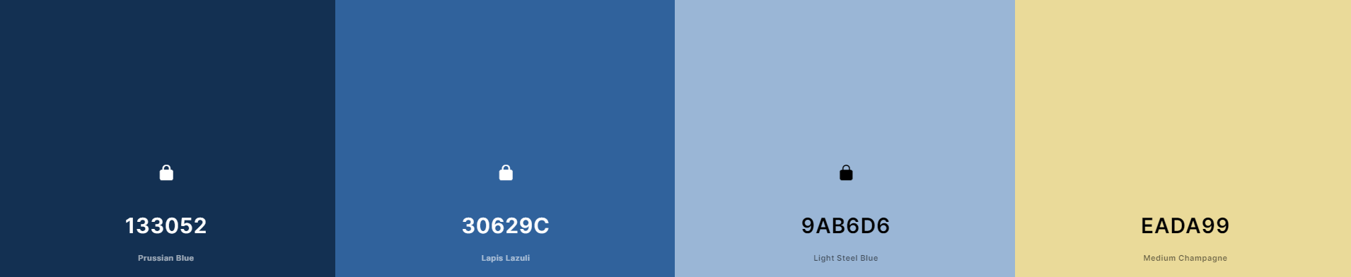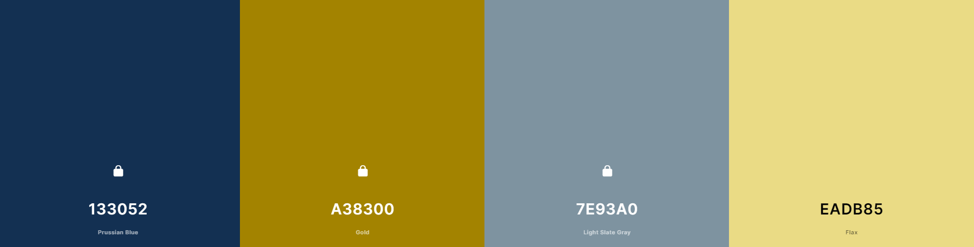 The color on the far left is your primary blue from your logo, which would be the color for the header, footer, and most heading text and buttons on the site. The secondary color is a deeper gold like we talked about, which will be more readable against a white background. The tertiary and quaternary colors will just be used as accents, so they're intentionally lighter. Let me know what you think!