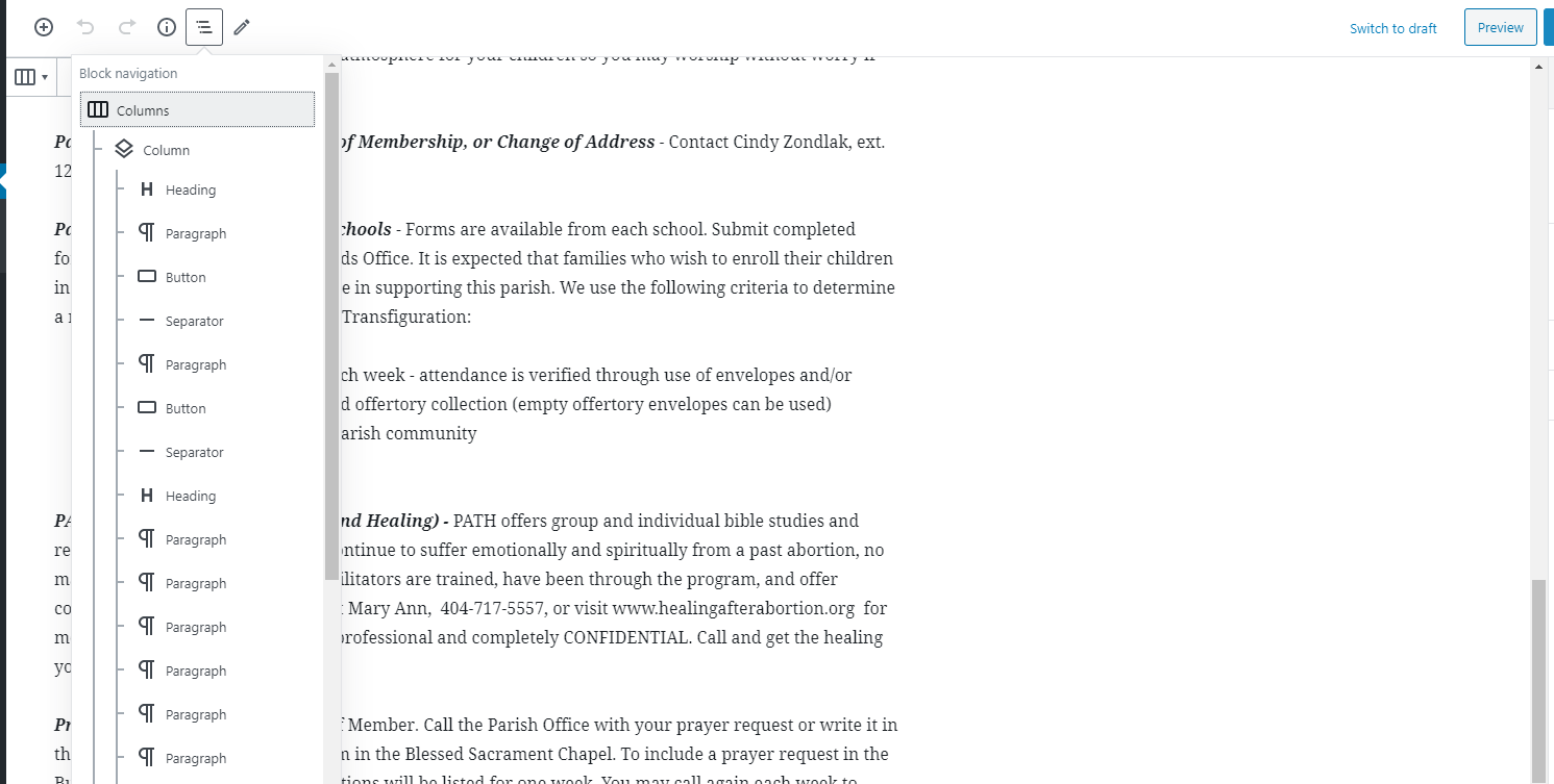 I have another questions regarding webpages. I would like to know how you got a two column page on https://transfiguration.diocesanweb.org/about-us/new-to-transfiguration/