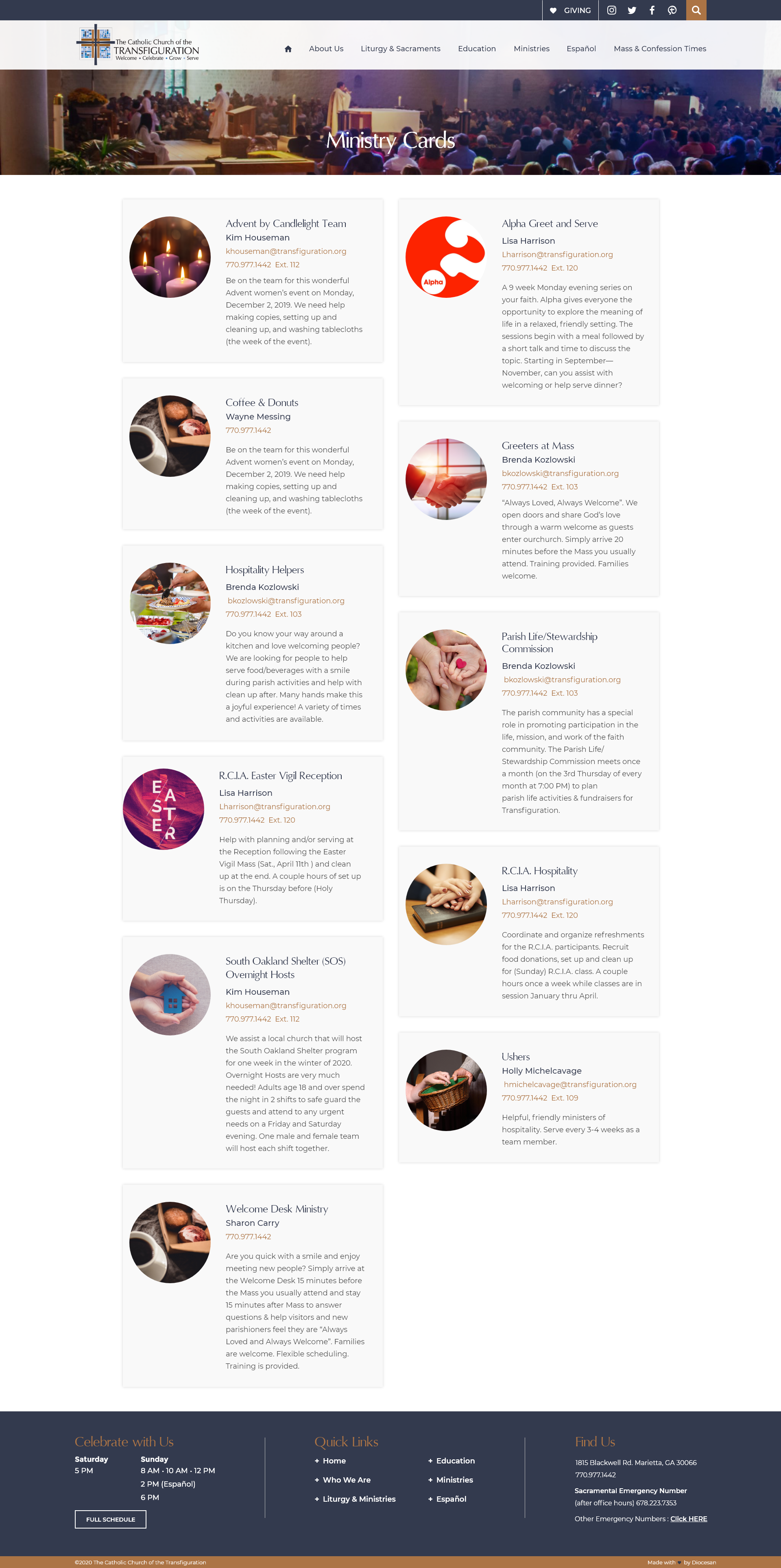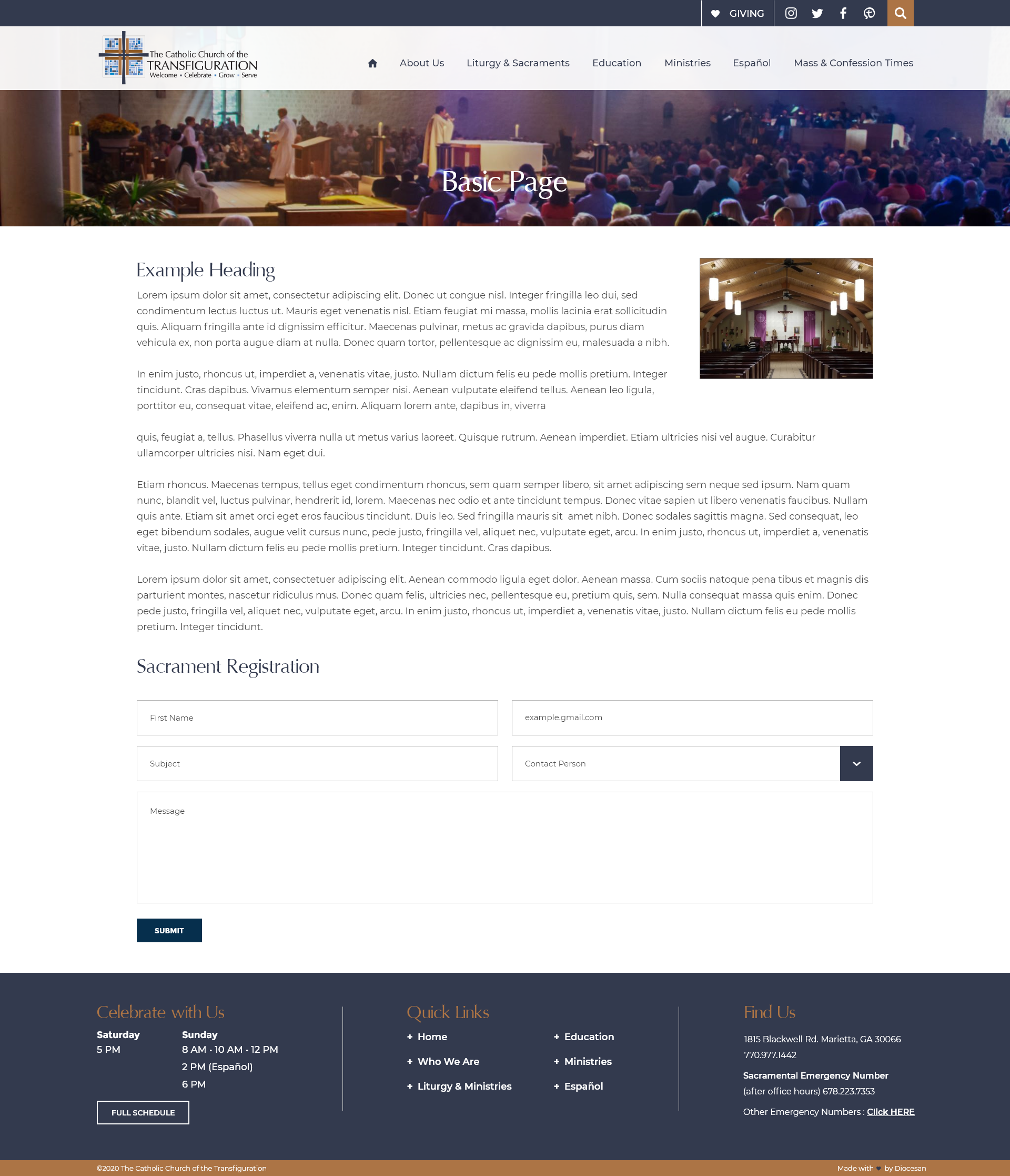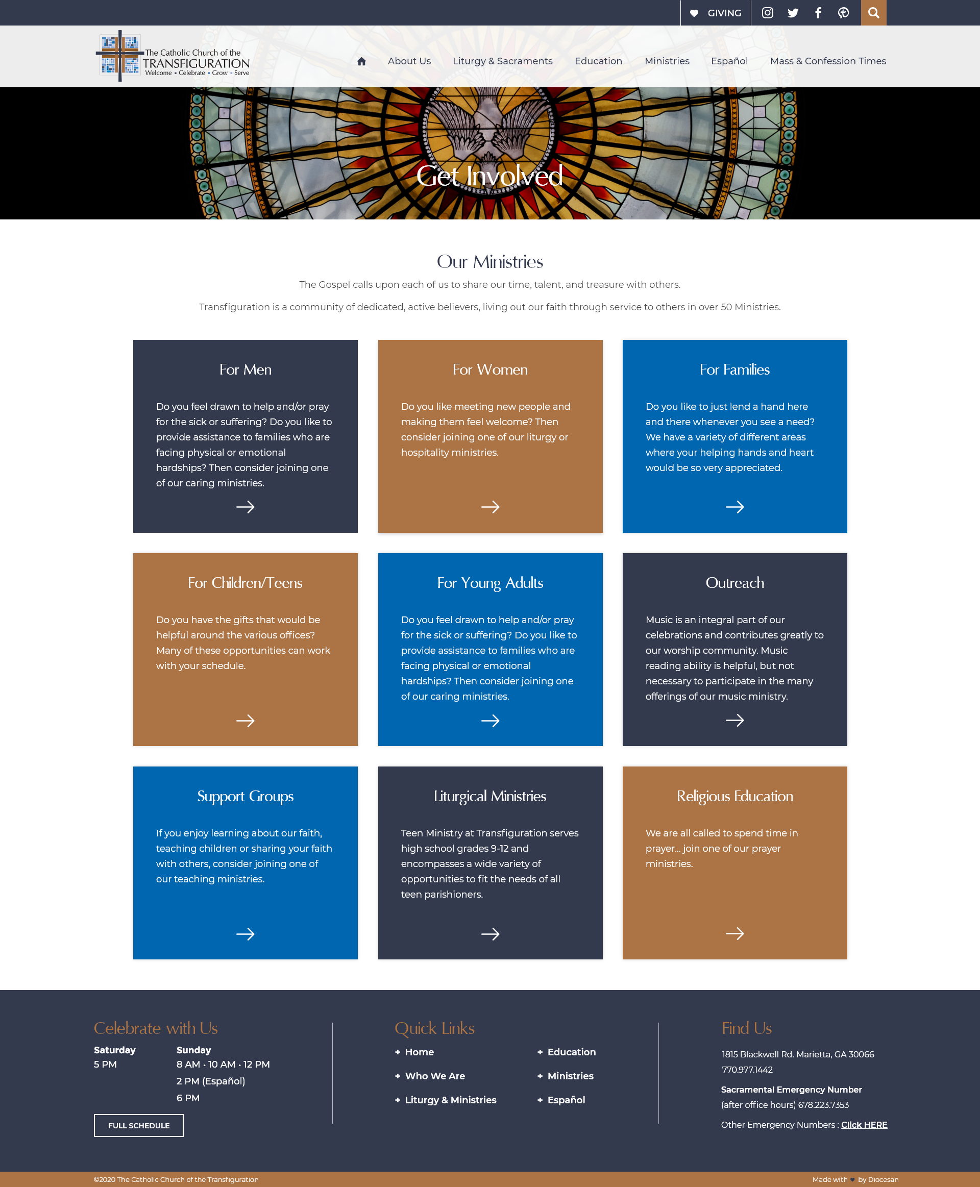 * Remove “Mass & Confession Times” from the menu. We will be using a box for that.