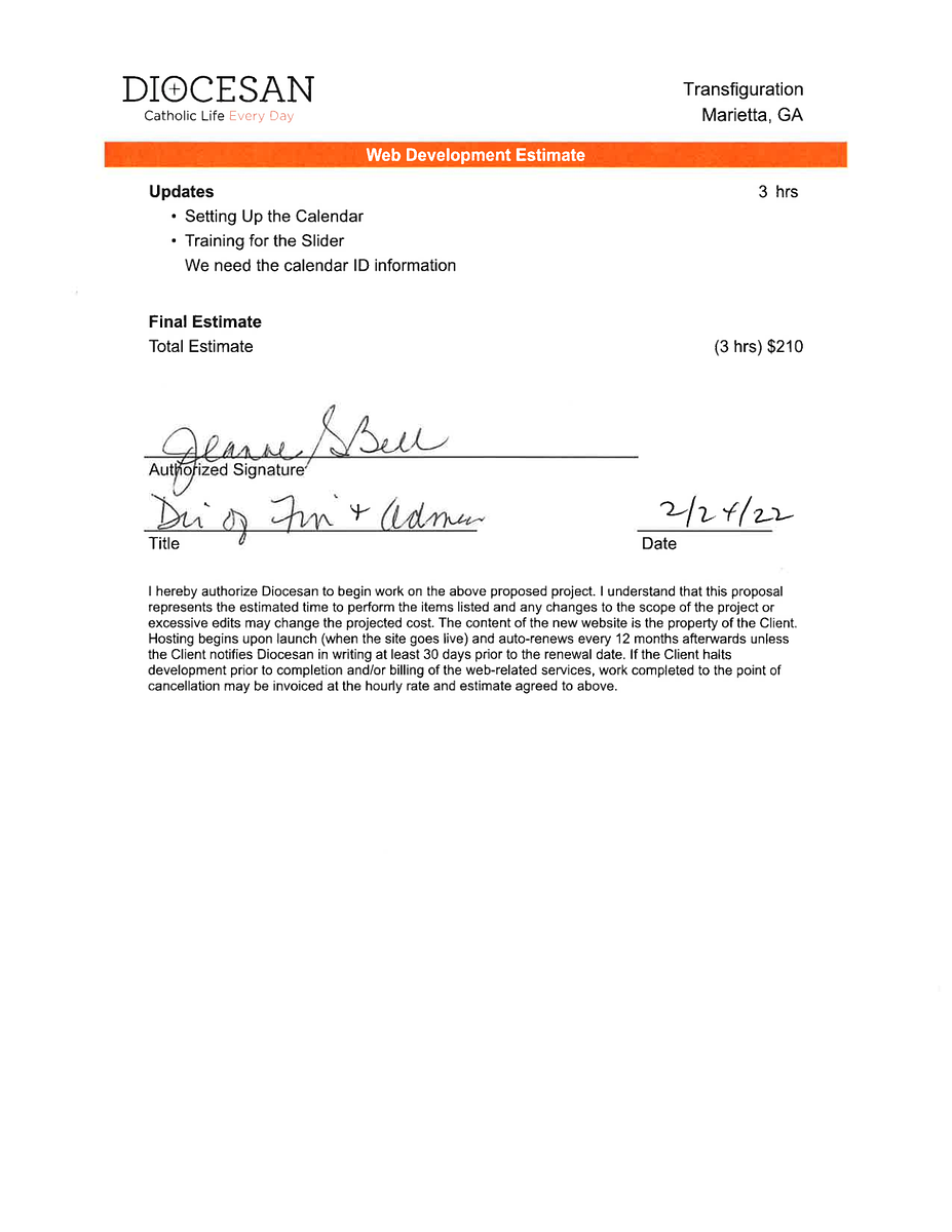 This look ok. Let me send it through parish leadership for approval and