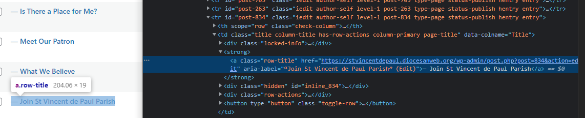 This has happened with the following pages: "Join SVDP parish, Becoming Catholic, Baptism to name a few. Greg, the Training Account, nor the admin account cannot edit these pages. Probably has something to do with iThemes Security or more likely, the REST API security permissions since when you look in the inspect console it throws a 401 error.