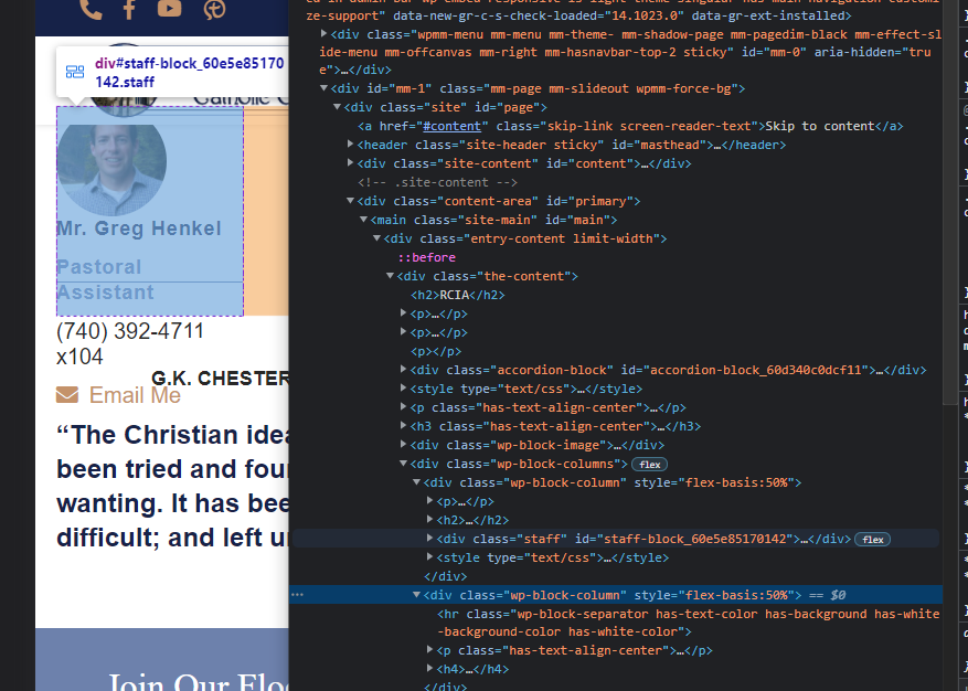 ✔ Staff Block - Mobile - Too small so things are spilling over into other content