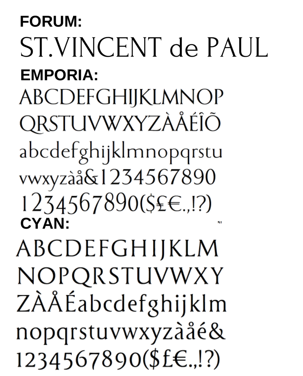 We loved the logo, however there is one concern about the “de” in St. Vincent de Paul not being capitalized. Whereas Cinzel is a great choice, they are concerned that the capital “DE” will confuse people. I was wondering we could use a different font? I think Emporia might be a good option?